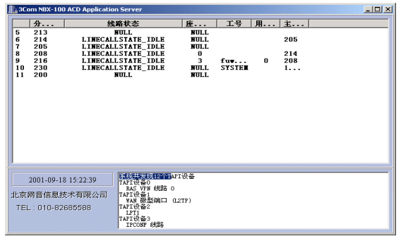 NBX呼叫中心的核心設(shè)備是3Com公司的NBX網(wǎng)絡(luò)交換機(jī),NBX網(wǎng)絡(luò)交換機(jī)支持開放式電話開發(fā)平臺(tái)TAPI2.X,TAPI它是Microsoft電話技術(shù)應(yīng)用程序編程界面標(biāo)準(zhǔn),運(yùn)用TAPI可以方便、高效地完成針對(duì)語(yǔ)音線路的控制開發(fā),從而完成自動(dòng)語(yǔ)音應(yīng)答(IVR)、自動(dòng)話路分配(ACD)、以及坐席接待、計(jì)費(fèi)、錄音等需求。使用TAPI這種標(biāo)準(zhǔn)使得用戶可以集成第三方CTI程序以完成各種高級(jí)需求。