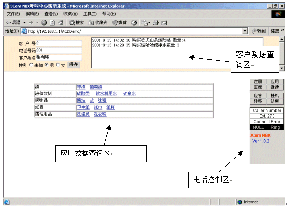 "無聲"一直是企業(yè)電子商務(wù)的最大遺憾,因?yàn)?無聲",許多消費(fèi)者卻步了。怎樣把語(yǔ)音和Web在網(wǎng)絡(luò)上結(jié)合起來?NBX呼叫中心的語(yǔ)音數(shù)據(jù)兩網(wǎng)合一的結(jié)構(gòu),可以方便地讓W(xué)EB訪問用戶與呼叫中心坐席進(jìn)行語(yǔ)音交流。消費(fèi)者在使用Internet瀏覽時(shí),點(diǎn)擊呼叫按鈕,就可以通過麥克風(fēng)與客服代表通話。并且網(wǎng)上來電與普通來電一樣,經(jīng)過交換及排隊(duì)處理,同樣支持來電資料彈出。對(duì)客戶來說,只需要一臺(tái)接入Internet的多媒體電腦和免費(fèi)的客戶端軟件就可實(shí)現(xiàn)Web瀏覽和交談功能。這個(gè)功能不僅可以讓客戶獲得更好的售后服務(wù),在售前服務(wù)中也可發(fā)揮巨大效用。消費(fèi)者在購(gòu)買之前必須對(duì)產(chǎn)品有充分了解,在網(wǎng)站瀏覽中通過與客戶代表的交流增進(jìn)產(chǎn)品了解,刺激其購(gòu)買欲望。