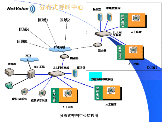 由于代理技能差異、語(yǔ)言差異、呼叫量的差異,以及客戶中心客戶所在地的變化及每個(gè)客戶對(duì)各自所擁有的用戶資料的保密性需求,分布式呼叫中心往往更適合各類企業(yè)的實(shí)際。分布式呼叫中心的建立,意味著需要在多個(gè)分中心之間進(jìn)行統(tǒng)一的呼叫控制及語(yǔ)音與同步數(shù)據(jù)轉(zhuǎn)移。NBX網(wǎng)絡(luò)交換機(jī)的引入,兩網(wǎng)合一的特性使分布式呼叫中心的建立成為了一件非常容易的事情。呼叫中心可以擴(kuò)展到多個(gè)位于不同地域的局域網(wǎng)上,通過路由選擇可以自動(dòng)地把呼叫(