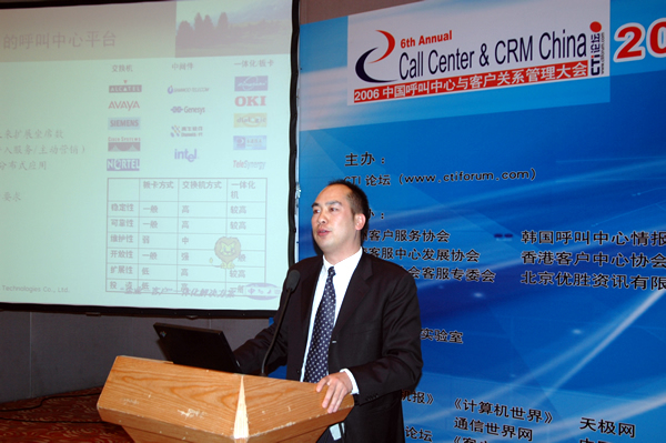 。。2006年4月3日至5日,2006中國呼叫中心與客戶關系管理大會在北京國際會議中心隆重召開,以下是4月4日下午專題演講的相關圖片報道: