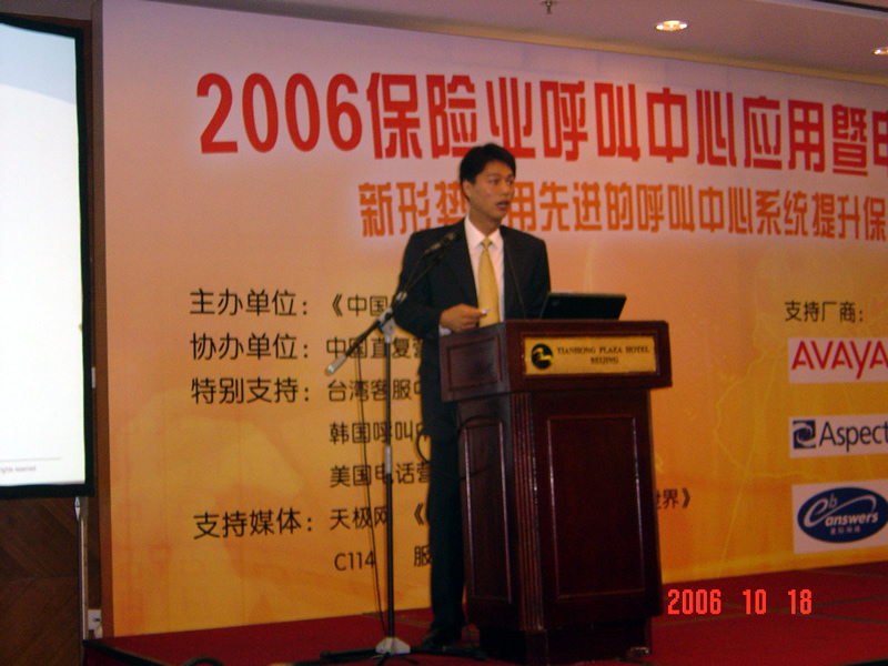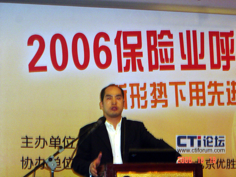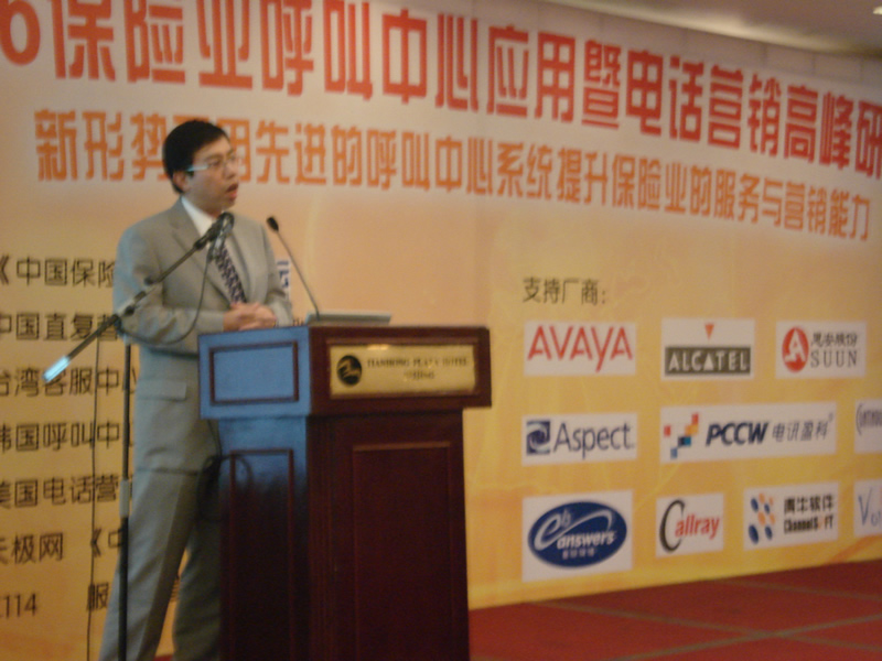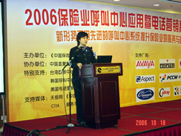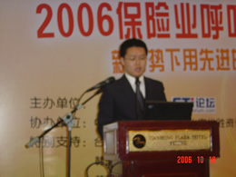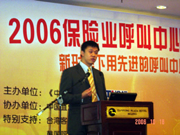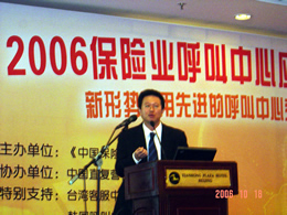 。。2006年10月18日,2006保險業(yè)呼叫中心應(yīng)用暨電話營銷高峰研討會在北京天鴻科園大酒店隆重召開,以下是大會主題演講的相關(guān)圖片報道: