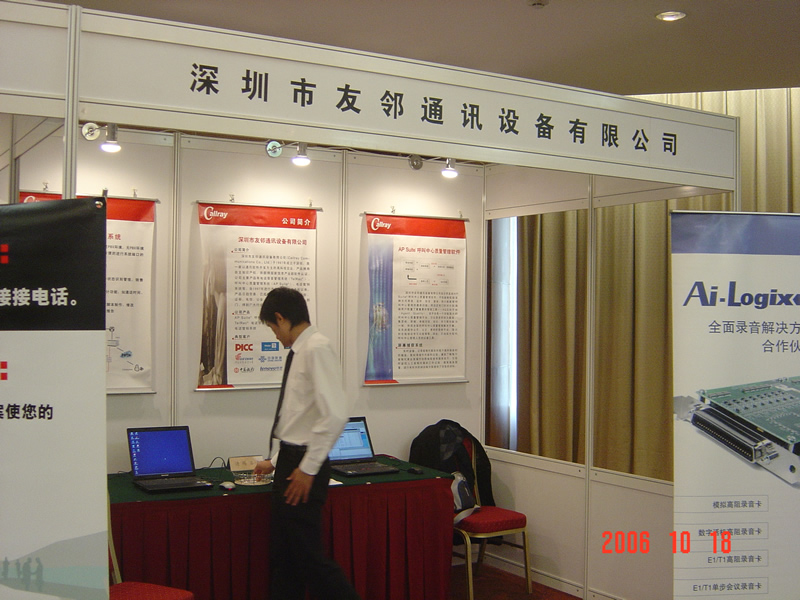 。。2006年10月18日,2006保險(xiǎn)業(yè)呼叫中心應(yīng)用暨電話營(yíng)銷高峰研討會(huì)在北京天鴻科園大酒店隆重召開,以下是展廳參觀的相關(guān)圖片報(bào)道: