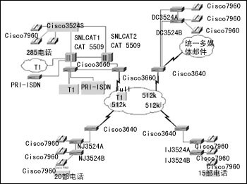 5500骨干網(wǎng)交換機(jī),并正在對其進(jìn)行升級(jí),以支持千兆以太骨干網(wǎng)。它還保留了現(xiàn)有的思科3600系列路由器,為各個(gè)分支機(jī)構(gòu)間的WAN和互聯(lián)網(wǎng)提供連接,用特有的WAN接口卡(WIC)支持他們的語音業(yè)務(wù)。因?yàn)槟苤С?30多部思科IP