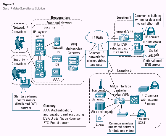 盡管圖中描述了眾多不同的網(wǎng)絡(luò)模塊,此架構(gòu)可相當簡單地加以總結(jié)。除安全運營中心外,所有視頻獲取和監(jiān)控設(shè)備都位于網(wǎng)絡(luò)邊緣。在總部和遠程地點設(shè)計中,它們都與接入層交換機連接。安全運營中心可被認作為一個新模塊,但也有人認為它只是另一初始管理模塊。其差別只是管理采取了物理安全的形式。