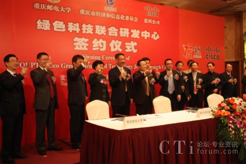 CTI論壇(ctiforum)2月3日消息(記者 潘婷):2月3日上午,思科公司與重慶郵電大學正式簽訂合作協(xié)議,共建“重慶郵電大學-思科綠色科技聯(lián)合研究實驗室”。“綠色科技聯(lián)合研究實驗室”的成立是思科履行其致力于推動中國創(chuàng)新和可持續(xù)發(fā)展承諾的重要舉措。此次合作中雙方將共同推動下一代互聯(lián)網、傳感器網絡以及綠色科技等領域的研發(fā),推進應用推廣和產業(yè)化發(fā)展,實現(xiàn)產學研一體化,幫助和支持重慶本土企業(yè)提高綠色科技創(chuàng)新的素質和能力,進而支持中國發(fā)展綠色經濟、節(jié)能減排的長期戰(zhàn)略。