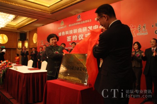 重慶市副市長童小平與思科公司全球副總裁林正剛出席簽約儀式,并共同為“綠色科技聯(lián)合研究實驗室”揭牌。儀式由重慶市政府人員副秘書長廖慶軒主持,重慶市經濟與信息化委員會黨組書記沐華平副主任作為見證人,與重慶郵電大學校長陳流汀教授、思科中國研發(fā)中心總經理常詢傳博士共同在協(xié)議書上簽字,思科公司和市級相關部門負責人參加了簽約儀式。