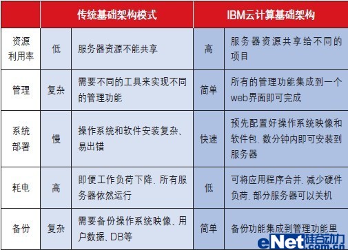 傳統(tǒng)IDC主要提供帶寬租用和機位租用服務(wù),服務(wù)種類單一,競爭激烈。云計算IDC借助IBM云計算管理平臺,可以提供更多種類的增值服務(wù),并提升利潤率。增值服務(wù)包括: 云計算虛擬基礎(chǔ)架構(gòu)服務(wù)、SaaS(軟件即服務(wù))軟件訂購服務(wù)等等。云計算IDC同時能夠簡化IDC的管理,并迅速響應(yīng)客戶的需求。