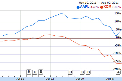 經(jīng)過昨天股市的暴跌以及今天的反彈,蘋果今日已超過埃克森成為全球市值最高的上市公司。