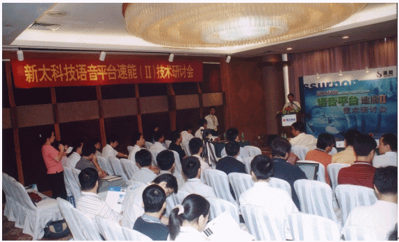 7月23日,新太科技在廣州花園酒店舉行"語音平臺速能II技術(shù)研討會"。新太科技執(zhí)行總裁梁平、副總裁何健明,開發(fā)中心副經(jīng)理張少文,營銷中心國際業(yè)務(wù)部副總經(jīng)理馬任遠(yuǎn)、產(chǎn)品經(jīng)理黃偉,新太科技合作伙伴Intel公司通訊產(chǎn)品業(yè)務(wù)部戰(zhàn)略客戶經(jīng)理林競宇,新太語音平臺速能產(chǎn)品核心代理商--廣州納特威科技公司總經(jīng)理黃淡輝,渠道總代理商--深圳意科特實(shí)業(yè)有限公司總經(jīng)理李面換等到會并作主題發(fā)言!吨袊(jì)算機(jī)報(bào)》、《計(jì)算機(jī)世界》、《SP計(jì)算機(jī)產(chǎn)品與流通》、IT168共四家專業(yè)媒體記者到會采訪。