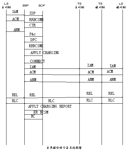 、 SSP按照SCP返回的被叫號(hào)碼及路由信息,與被叫側(cè)TS、LS局進(jìn)行IAM、ACM和ANM(應(yīng)答消息)等ISUP信令交互;