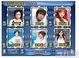 流行歌手選擇界面