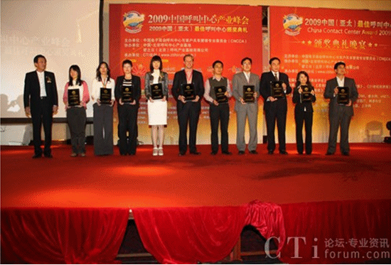 “2009中國呼叫中心產(chǎn)業(yè)峰會暨2009中國(亞太)最佳呼叫中心”頒獎典禮于10月15日在北京富力萬麗酒店舉行并取得圓滿成功。本次大會由中國電子商會呼叫中心及客戶關(guān)系管理專業(yè)委員會(CNCCA)主辦,密之云(北京)呼叫產(chǎn)業(yè)基地有限公司協(xié)辦,CTI論壇承辦。同時,大會還獲得了亞太客服與呼叫中心聯(lián)盟(APCCAL)、上海市呼叫中心與無線尋呼協(xié)會和北京市通信行業(yè)協(xié)會呼叫中心專業(yè)委員會等機(jī)構(gòu)的大力支持。