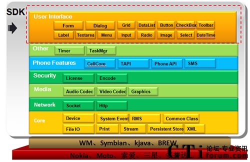 據(jù)新太科技內(nèi)部相關(guān)人員介紹,mWAY的技術(shù)架構(gòu),一方面可以支持電信網(wǎng)絡(luò)各種各樣的接入,保證和運營商已有的網(wǎng)絡(luò)的互聯(lián)互通,同時也支持和移動互聯(lián)網(wǎng)手機(jī)之間的連接,支持相關(guān)音頻、視頻的呼叫、傳送。業(yè)務(wù)接口可以給第三方應(yīng)對研發(fā)需求,手機(jī)終端有相關(guān)的引擎,滿足手機(jī)終端的業(yè)務(wù)研發(fā)的需求,這部分有一個手機(jī)客戶端軟件,是一個移動性的引擎。這個引擎移植在手機(jī)終端客戶端上,給上層提供統(tǒng)一的解析開放系統(tǒng)。