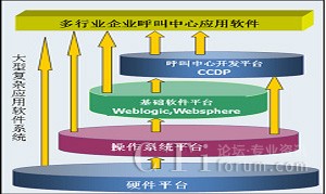 應(yīng)用軟件可以是基于硬件平臺、操作系統(tǒng)、基礎(chǔ)軟件架構(gòu)平臺(比如J2EE中間件,Bea Weblogic, IBM WebSphere等)、業(yè)務(wù)基礎(chǔ)軟件平臺這幾個不同的層次來開發(fā)實現(xiàn)的。目前大多數(shù)應(yīng)用軟件開發(fā)商都是基于操作系統(tǒng)或基礎(chǔ)軟件架構(gòu)平臺這兩個層次上來直接構(gòu)建應(yīng)用軟件,而沒有一個通用的、開放的、擴展能力強的業(yè)務(wù)軟件開發(fā)平臺來支持,比較難滿足呼叫中心業(yè)務(wù)軟件在個性化、靈活、可重用方面需求。