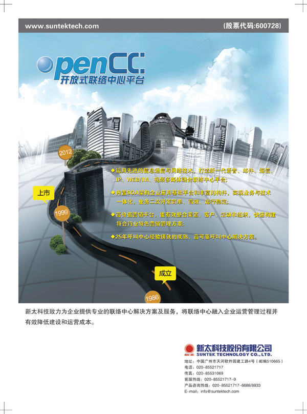 目前,新太科技的業(yè)務(wù)集中在現(xiàn)代信息服務(wù)業(yè)的三個主要領(lǐng)域發(fā)展,包括電信增值領(lǐng)域、呼叫中心領(lǐng)域和監(jiān)控安防領(lǐng)域、IT服務(wù)領(lǐng)域(包括電信平臺維保業(yè)務(wù)、云計算產(chǎn)品集成服務(wù)、軟件外包及一站式供應(yīng)鏈管理服務(wù)),并在過去的兩年中得到了全面提升和快速發(fā)展。近期承接了一系列國家級電信增值業(yè)務(wù)平臺項目、廣州亞運會工程項目、廣州市及番禺區(qū)平安城市視頻監(jiān)控與安防系統(tǒng)項目。