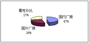 。5)向誰購(gòu)買:鑒于國(guó)內(nèi)并沒有知名度很高的CRM實(shí)施廠商,而國(guó)外的著名廠商在國(guó)內(nèi)的品牌宣傳也不足,所以我們的調(diào)查表中只設(shè)了:國(guó)內(nèi)廠商、國(guó)外廠商和根據(jù)性價(jià)比進(jìn)行選擇三個(gè)項(xiàng)目,與購(gòu)買能力對(duì)照,預(yù)期實(shí)施金額在100萬以下的企業(yè),一般側(cè)重國(guó)內(nèi)廠商,而實(shí)施金額在100萬以上企業(yè)則側(cè)重國(guó)外企業(yè)。