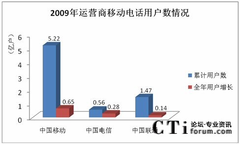 截至2009年12月31日,國內(nèi)移動電話用戶累計達(dá)到74738.4萬戶,中國移動的用戶總數(shù)已達(dá)到5.22億戶,累計客戶凈增長6503.3萬戶,在三大運營商中,中國移動的用戶保有量和每月新增用戶數(shù)份額仍然最大。