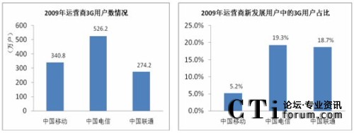 截止2009年12月底,三大運營商3G用戶數(shù)累計達(dá)到約1141萬戶,在移動通信用戶中的占比為1.5%。在三大運營商中,中國電信3G用戶數(shù)最大,達(dá)到526.2萬;中國電信和中國聯(lián)通的新發(fā)展用戶中3G用戶相對較高,均在19%左右;中國移動在3G用戶發(fā)展方面,暫時落后。
