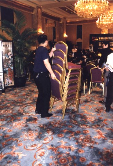 大會(huì)工作人員正在為來(lái)賓臨時(shí)增加椅子