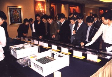 工程師們正在參觀現(xiàn)場(chǎng)展示的產(chǎn)品