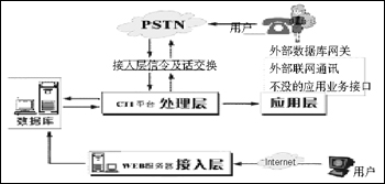 處理層為系統(tǒng)核心層,主要負(fù)責(zé)系統(tǒng)的管理及指揮,如系統(tǒng)數(shù)據(jù)庫IVR語音交互式服務(wù)、系統(tǒng)數(shù)據(jù)庫和移動(dòng)網(wǎng)(聯(lián)通和移動(dòng))及各傳呼臺信令的交換。