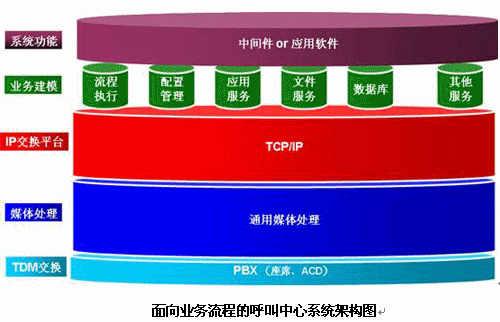 面向業(yè)務流程的呼叫中心基礎平臺采用水平式系統(tǒng)架構,此種架構方式屏蔽了底層功能(如交換、媒體處理)的技術實現,通過業(yè)務抽象為業(yè)務流程提供功能部件的組合,相對于傳統(tǒng)的垂直分散的結構而言,用戶只關注業(yè)務流程,無需關心底層的技術實現。