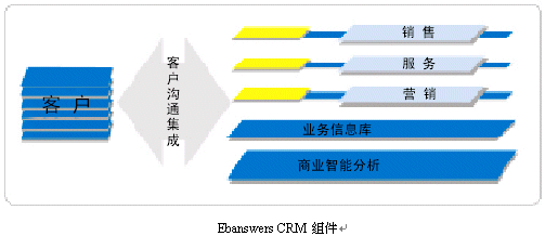 。。作為企業(yè)級客戶關(guān)系全面解決方案,Ebanswers CRM包含了可無縫整合又可獨立運行的三個功能組件:銷售,營銷,服務流程自動化軟件系統(tǒng);客戶溝通集成信息化方案;深層商業(yè)智能分析。其中客戶溝通層組體是Ebanswers