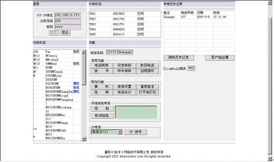 。。利用內(nèi)嵌的OCX控件,星際網(wǎng)絡已經(jīng)完全實現(xiàn)了在web頁面調(diào)用呼叫中心的功能,其主界面如下: