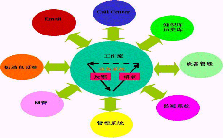 工行北方數(shù)據(jù)中心HelpDesk系統(tǒng)與工行北方數(shù)據(jù)中心的設(shè)備管理系統(tǒng)、網(wǎng)管系統(tǒng)和監(jiān)視系統(tǒng)整合,使HelpDesk系統(tǒng)能夠為技術(shù)支持人員提供更多的信息。通過與網(wǎng)管集成,可以利用HelpDesk系統(tǒng)發(fā)布網(wǎng)管采集的異常信息,同時這些信息可以為技術(shù)支持人員的工作提供參考。設(shè)備管理信息不但可以供技術(shù)支持人員參考,還可以使當(dāng)前的工作與設(shè)備相關(guān)。這樣便于監(jiān)督、審查,同時也使設(shè)備維護(hù)的歷史信息可以供日后參考。監(jiān)視系統(tǒng)提供報警和大屏幕顯示。大屏幕顯示系統(tǒng)可以把取自系統(tǒng)內(nèi)的關(guān)鍵數(shù)據(jù)顯示到幕墻上。