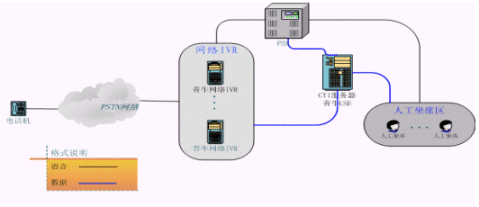青牛IVR集群方案將原來放在PBX后面的IVR"前移",PBX的LINK只有和坐席相關(guān)的信息,大量的和IVR相關(guān)的呼叫信息被剝離出去,由青牛網(wǎng)絡(luò)IVR直接自行處理。根據(jù)統(tǒng)計(jì),自動業(yè)務(wù)的呼叫量在整個(gè)客服中心呼叫量中占大多數(shù),當(dāng)呼叫量越大的時(shí)候,該方案的優(yōu)勢就越明顯。