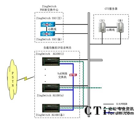 同時基于ZingSwitch® CVNET平臺的系統(tǒng)網(wǎng)絡(luò)架構(gòu)中,AG100(IP語音網(wǎng)關(guān))自身具有99.999%的高穩(wěn)定性外,具有負(fù)載均衡能力保證語音接續(xù)的不中斷。