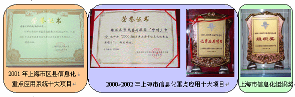 去年,徐匯區(qū)政府憑借其"市民咨詢服務(wù)(呼叫)中心",脫穎而出,一舉獲得"2001年上海市區(qū)縣信息化重點應(yīng)用系統(tǒng)十大項目"大獎;今年,在新近上海市政府進行的信息化評比中,徐匯區(qū)政府又榮獲兩項大獎,分別是"上海市信息化組織"和"2000~2002年上海市信息化重點應(yīng)用十大項目"。上海市市委書記陳良宇親自頒發(fā)獎項。