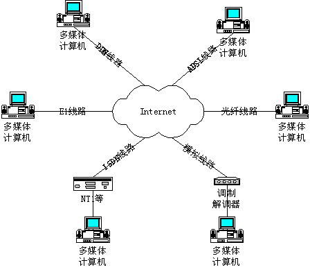 IBM PC及兼容機,Pentium 200 CPU、 64M RAM配置,安裝Windows 98/Windows NT/Windos 2000其中之一的操作系統(tǒng),配置全雙工的聲卡,并配備了音響、麥克風(fēng)。