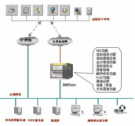 - 話務(wù)自動分配ACD功能:對撥入系統(tǒng)內(nèi)部的電話,可以選用撥入電話自動分配到員工的話機(jī)上,如對同一個業(yè)務(wù)功能相同的部門, AltiWare