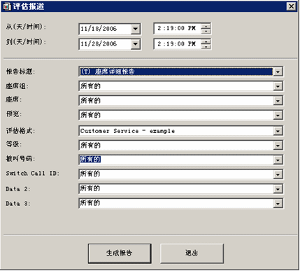 在質(zhì)量管理系統(tǒng)中,用戶可以通過評估報表生成器,定義客戶化的評估報表。用戶可以針對座席的表現(xiàn)生成文字和圖形化的報表。通過這些報表,可以了解需要改善和增強的座席培訓(xùn)內(nèi)容。