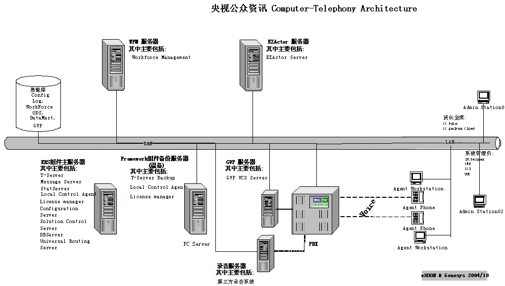 由于簽約時(shí)距離2005年春節(jié)聯(lián)歡晚會(huì)只有不足2個(gè)月的時(shí)間,勝利完成春節(jié)聯(lián)歡晚會(huì)時(shí)的電話服務(wù)工作就成為CCTV公眾資訊中心和eSOON的最大目標(biāo)。因?yàn)橛脩舨捎昧顺墒斓膃SOON解決方案(CTI-Genesys ERS;IVR-Genesys GVP;CRM-eSOON EZactor),所以整個(gè)系統(tǒng)在短短一個(gè)月內(nèi)就完成了上線工作。在經(jīng)過(guò)詳細(xì)的測(cè)試及全面的人員培訓(xùn)后整個(gè)系統(tǒng)經(jīng)受住了春節(jié)聯(lián)歡晚會(huì)的考驗(yàn),圓滿完成了晚會(huì)的電話、短信的支撐工作。徹底擺脫了前幾年系統(tǒng)不堪應(yīng)付突發(fā)大量呼叫的窘境,提升了CCTV公眾資訊有限公司的服務(wù)品質(zhì)。