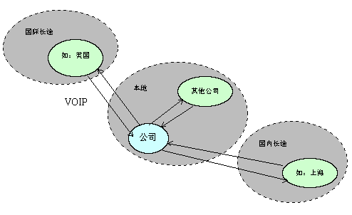 (3) 對于國際其他公司或個人:可以利用VOIP接入公司,再轉(zhuǎn)入國內(nèi)長途或者國際長途