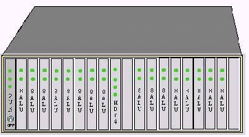 見上圖 DAS120主機(jī)所用的機(jī)框?yàn)?9英寸標(biāo)準(zhǔn)機(jī)框,可直接裝入19英寸機(jī)柜,也可放置在桌面。機(jī)框共有20個(gè)槽口,兩邊可插兩塊電源板PSU,中間插數(shù)字中繼接口板HDT4,其余16個(gè)槽可插15塊模擬用戶板8ALU(或8ATU)。8ALU每塊板為8路,一個(gè)機(jī)框總共120路。