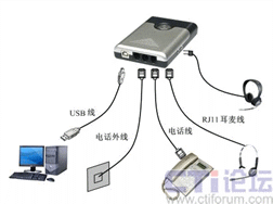 “話務(wù)通”設(shè)計(jì)新穎,接口包括電話線路接口、電話機(jī)接口、耳機(jī)接口和USB通信接口。配置立體聲揚(yáng)聲器和環(huán)型提示燈,提供聲光提示!霸拕(wù)通”能夠提供IP網(wǎng)絡(luò)電話,自動(dòng)應(yīng)答,自動(dòng)外撥,來(lái)電彈屏,語(yǔ)音錄放,語(yǔ)音留言等功能。