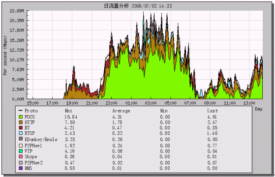7月1日,網(wǎng)管中心在陽(yáng)泉CMNet匯聚層進(jìn)行了流量分析工作。