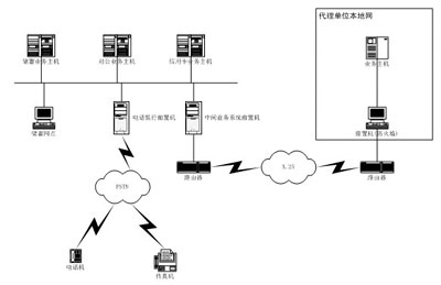 根據(jù)業(yè)務(wù)需求,電話銀行前置機(jī)以 PC服務(wù)器(聯(lián)想萬全服務(wù)器)為硬件平臺,通過PSTN網(wǎng)接電話機(jī)、傳真機(jī)以及其他查詢終端,另一端接電話銀行前置機(jī)中的語音卡。