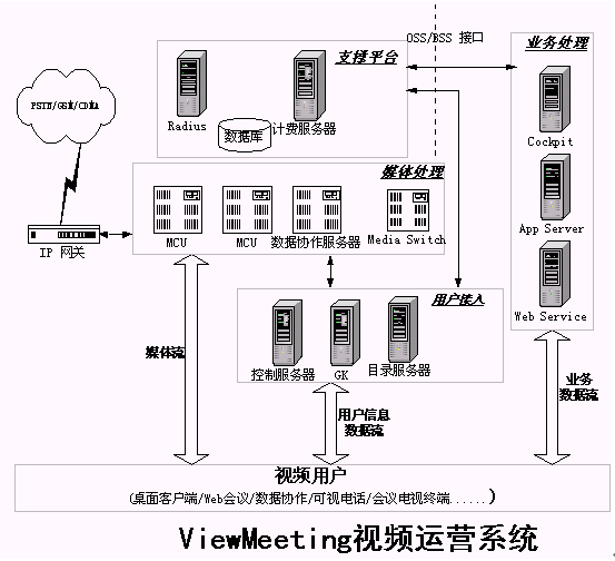 發(fā)展寬帶視頻業(yè)務(wù),提供寬帶視頻通信解決方案是優(yōu)視風的宗旨,利用ViewMeeting平臺(如圖1所示),運營企業(yè)可以制定針對不同用戶需求的不同視頻業(yè)務(wù),使視頻業(yè)務(wù)能夠普及到更廣的用戶范圍中。