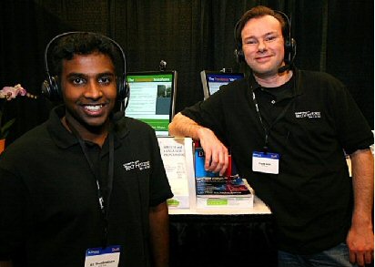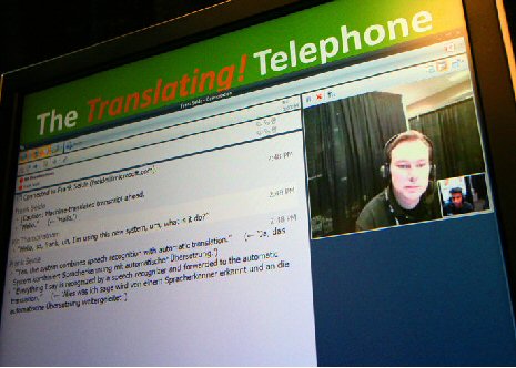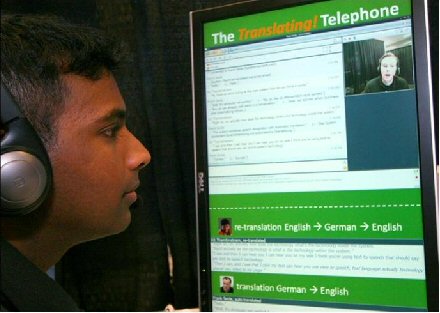 Thambiratnam說:“當(dāng)多種不同背景的人需要一起交流時(shí),我們的技術(shù)就能提供非常大的便利!盩hambiratnam用同聲傳譯電話展示了這樣一種的情景:Thambiratnam說英語,他要給他的德國籍經(jīng)理Frank