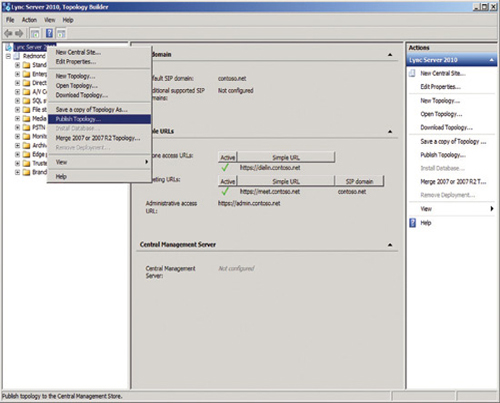 感到滿意后,可使用拓撲生成器來驗證拓撲。如果它作為有效拓撲通過驗證,則可以發(fā)布。發(fā)布拓撲時,Lync Server 會將拓撲存入中央管理存儲。如果尚未創(chuàng)建中央管理存儲,Lync 會在您提供有效拓撲并準備發(fā)布拓撲時創(chuàng)建中央管理存儲。在所處環(huán)境的各臺服務(wù)器上安裝 Lync Server 時,服務(wù)器會從中央管理存儲讀取拓撲,并安裝自身以配合其在您的部署中的角色。