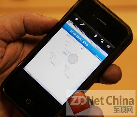 圖:阮闖用自己的iPhone手機演示登錄集團的信息化平臺非常方便。