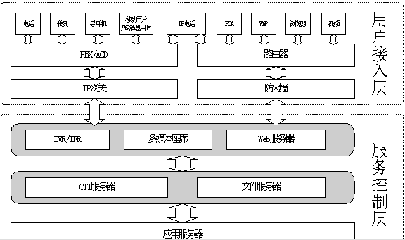 即多媒體客服中心的接入端,包括IVR流程、人工坐席等,它是用戶進入多媒體客服中心客服系統(tǒng)的入口,它將直接面對用戶并收集各種信息。支持電話、傳真、電子郵件、WEB訪問、WAP、PDA、IP電話、網絡電話、視頻電話等多種方式接入。