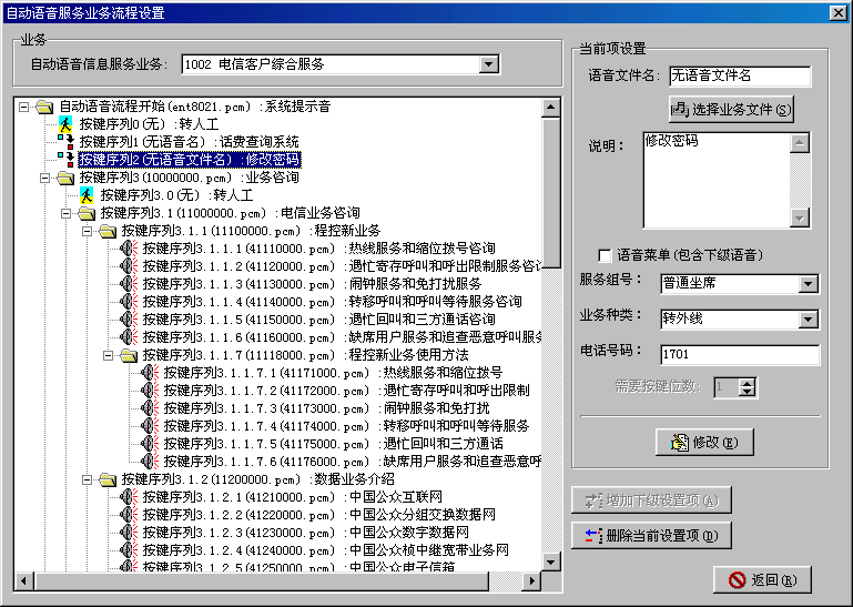 。。智能業(yè)務(wù)管理系統(tǒng)是Utron-CC2000進(jìn)行業(yè)務(wù)擴(kuò)充的主要手段。用戶如需擴(kuò)展新的業(yè)務(wù),主要通過(guò)智能業(yè)務(wù)管理系統(tǒng)向Utron-CC2000注冊(cè)該業(yè)務(wù);并為系統(tǒng)中的座席分配業(yè)務(wù)。根據(jù)實(shí)際業(yè)務(wù)的需求,生成相應(yīng)的系統(tǒng)信箱、業(yè)務(wù)腳本、服務(wù)項(xiàng)目等,來(lái)實(shí)現(xiàn)新業(yè)務(wù)的動(dòng)態(tài)加載。
