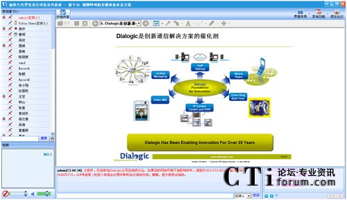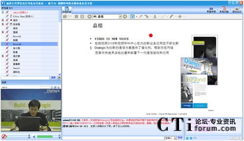 作為最早將3G語音視頻技術引入中國的世界級技術提供商,Dialogic在語音應用和3G視頻一直具有領先競爭力。在此次“基于3G視頻呼叫的多媒體業(yè)務及方案”網(wǎng)絡研討會上,Dialogic中國區(qū)技術總監(jiān)陳益斌,以音視頻的在線直播方式,親身向與會觀眾講解Dialogic基于3G視頻呼叫的業(yè)務,以及與3G數(shù)據(jù)業(yè)務的區(qū)別等前瞻3G視頻技術。
