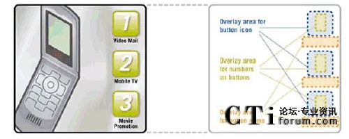 互作用提出了更進一步的挑戰(zhàn)。能夠使用戶訪問多個 TV 頻道以及獲得其他服務的視頻門戶,是一個很好的研究實例。視 頻門戶顯示了基于每個用戶活動、訪問權限、服務描述等的服務菜單。一般來說,菜單是有限列表,用戶通過在手持終端 按下相應的鍵來進行選擇 (圖2.通過示意圖說明了動態(tài)菜單的映射方法)。為了創(chuàng)建菜單,應用程序控制了基礎架構,而該 基礎架構動態(tài)地生成了有限列表,并在當前的視頻流頂端顯示為一個靜態(tài)覆蓋圖。相同技術可用于顯示基于用戶活動或位 置進行品牌和廣告宣傳的 logo 或文本。