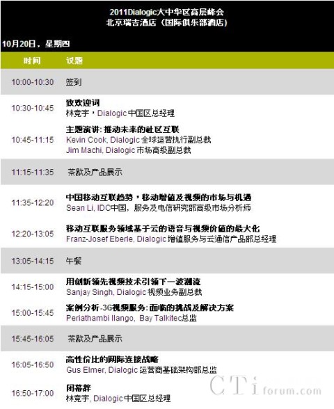 | “Dialogic中國客戶高層峰會”10月20日在京舉行 2011-10-17 |